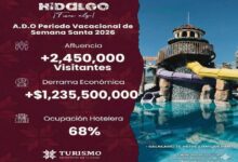 PACHUCA DE SOTO, 14 ABR/NEWS HIDALGO/.- Durante la Semana Santa 2026, Hidalgo presentó una afluencia superior a 2 millones 450…