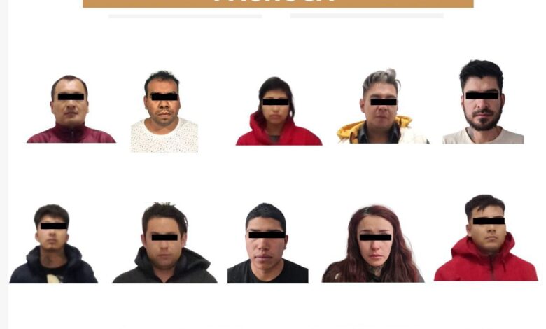 Durante el despliegue policial, se ubicaron e intervinieron a los vehículos, uno en la colonia Chacón y el otro sobre el bulevar Everardo Márquez, logrando la detención de 11 personas: dos mujeres y nueve hombres, entre ellos un menor de edad, y uno más identificado como agente de la Procuraduría General de Justicia de Hidalgo, quien se presume es el líder de la banda delictiva.