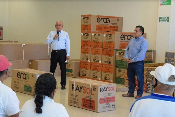 Momento significativo de esta ceremonia fue la entrega de los primeros calentadores solares a los ciudadanos Sandra Elvira Longino Ramírez, María de los Ángeles Valencia Ortega y Lorenzo González Mora; quienes a partir de la instalación de esta tecnología estarán en condiciones de aprovechar la energía solar.
