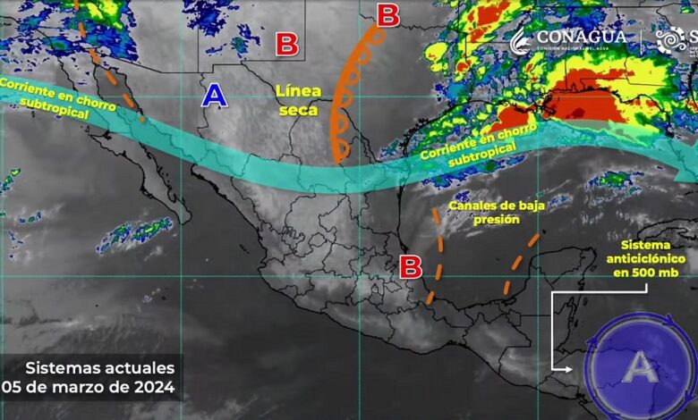 Las condiciones antes mencionadas serán originadas por dos canales de baja presión, el primero extendido desde el Golfo de México hasta el sureste mexicano y el segundo sobre la Península de Yucatán, en interacción con la entrada de humedad procedente del Mar Caribe y Golfo de México; una línea seca ubicada sobre Coahuila, en combinación con un canal de baja presión sobre el noreste de territorio nacional y la corriente en chorro subtropical, así como por la circulación anticiclónica en niveles medios de la atmósfera.