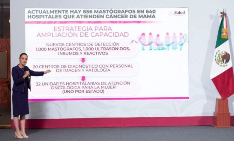 CIUDAD DE MÉXICO, 21 OCT/NEWS HIDALGO/.- La Presidenta Claudia Sheinbaum Pardo anunció una inversión de 8 mil millones de pesos (mdp) que se destinará al Modelo de Atención Universal de Cáncer de Mama, que marcará un antes y un después en la atención de esta enfermedad, que en México es la principal causa de muerte en mujeres, y para ello se adquirirán, entre 2026 y 2027, mil mastógrafos, mil ultrasonidos, —que se sumarán a los 656 mastógrafos que ya están en operación en 640 hospitales—, que estarán en los Nuevos Centros de Detección, además se aperturarán 20 Centros de Diagnóstico con personal de imagen y patología para la interpretación de los estudios y se construirán 32 Unidades Hospitalarias de Atención Oncológica para la mujeres, uno en cada estado.