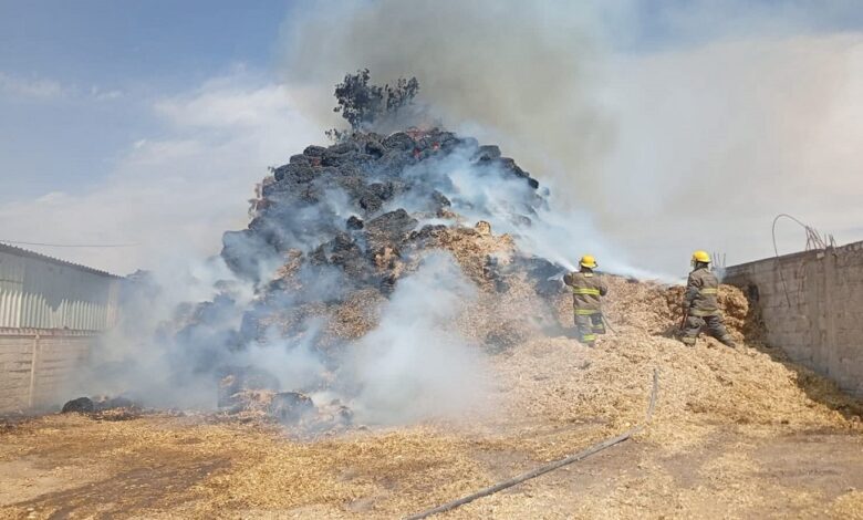 PACHUCA DE SOTO, 24 ENE /NEWS HIDALGO/.- Incendio de un enorme montículo de pacas de forraje en el interior de la cuenca lechera en Tizayuca, movilizó hoy a los cuerpos de emergencia que atendieron el reporte.