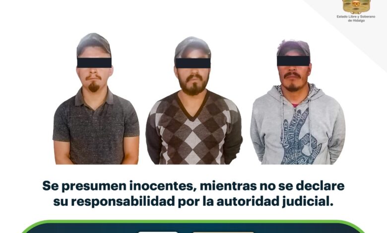 Los hombres, que se identificaron como S.S.L., V.D.J.P. e I.L.S., de 37, 27 y 34 años, respectivamente, quedaron a disposición de la Fiscalía General de la República, mediante su representación en Hidalgo, bajo investigación.