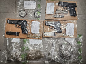 A los implicados, identificados con las iniciales J. A. G. C., de 27 años de edad, originario de la Ciudad de México; M. C. D., de 23 años de edad, y A. A. Z., de 23 años de edad, ambos del estado Campeche, les fueron aseguradas 18 dosis de droga con características propia de la marihuana, tres armas de fuego y dos insignias similares a las de la Agencia de Investigación Criminal de la Procuraduría General de la República, por lo que fueron puestos a disposición de la autoridad competente para el curso de las investigaciones.