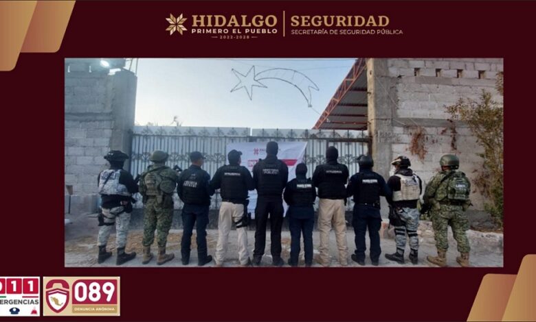 La acción se realizó en un inmueble ubicado en la calle 20 de Noviembre, donde fueron detenidas dos personas identificadas con las iniciales J.C.G. y F.R.A., ambas originarias del estado de Hidalgo, quienes fueron puestas a disposición de la PGJEH para el desarrollo de las investigaciones correspondientes.