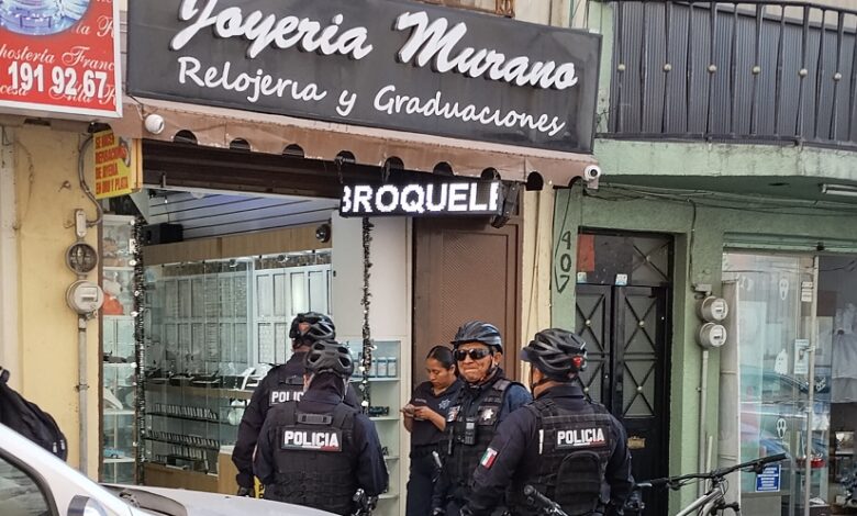 En Pachuca el asalto a una joyería con razón social Muran ubicada en plena zona centro de la ciudad en la calle Guerrero, ocasiono una intensa movilización policial luego que tres sujetos a bordo de una motocicleta y un auto compacto perpetraron el robo de joyas, relojes y otros objetos de valor cuyo monto supera el medio millón de pesos.