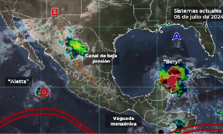 PACHUCA DE SOTO, 05 JUL/NEWS HIDALGO/.- La madrugada de hoy viernes, a las 05:05 horas, tiempo del centro de México, el centro de Beryl tocó tierra como huracán categoría 2, en la escala Saffir-Simpson, con vientos máximos sostenidos de 175 kilómetros por hora (km/h) y rachas de 220 km/h al norte de Tulum, en Quintana Roo.