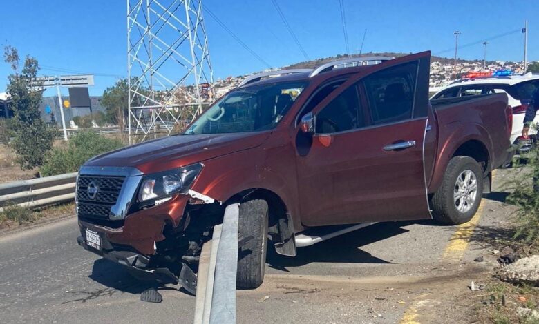 PACHUCA DE SOTO, 17 JUL /NEWS HIDALGO/.- Una mujer estuvo a punto de morir en el bulevar Santa Catarina, en Pachuca, luego que la camioneta en la que viajaba se impactó contra la barra metálica de contención y se incrustó en la unidad.
