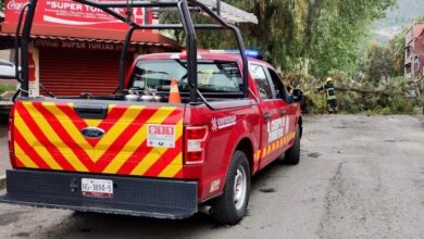 Bomberos retira árbol frente al Mercado Benito Juárez de Pachuca