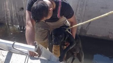 Rescatan a perrito atrapado en canal de aguas de Mixquiahuala