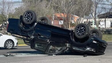 Choque y volcadura frente a Plaza Explanada