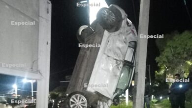 PACHUCA DE SOTO, 26 AGO /NEWS HIDALGO/.- Recargado en posición vertical sobre un poste de energía eléctrica quedo un vehículo…