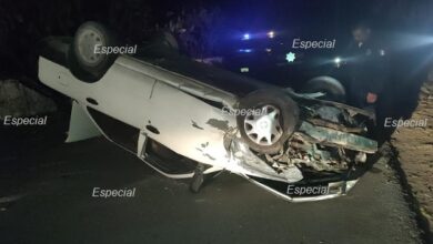 Dejan abandonado auto tras volcarse en Mixquiahuala
