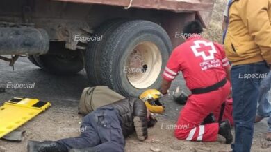 Motociclista termina debajo de camión