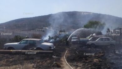 Incendio forestal arrasa con llantas y autos abandonados en Pachuca