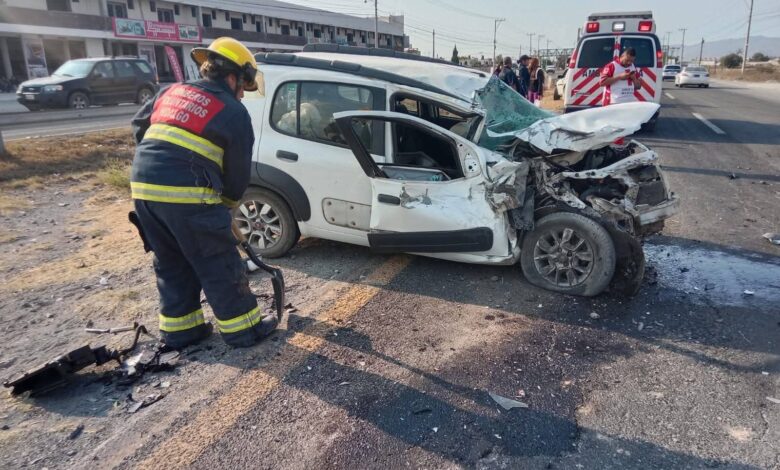 PACHUCA DE SOTO, 04 MAR /NEWS HIDALGO/.- Un fuerte choque entre un auto compacto y un tracto camión se registró en la carretera federal Pachuca – Ciudad Sahagún en el kilómetro 13, en jurisdicción del municipio de Epazoyucan.