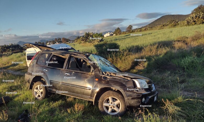 En este sitio la policía local encontró accidentados un vehículo Nissan platina, color rojo, con placas de Hidalgo y una camioneta Nissan X trail, color negro, con matricula de Hidalgo, está última que volcó, dio volteretas y quedó sobre su cuatro ruedas.