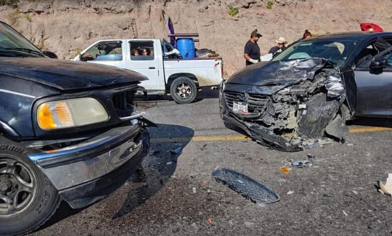 PACHUCA DE SOTO, 05 ENE /NEWS HIDALGO/.- Un choque frontal entre dos vehiculos se registró hoy en la carretera federal México – Laredo, a la altura de las curvas de Texquedho en los límites de los municipios de Tasquillo y Zimapan, una camioneta Ford y un auto tipo sedan marca Mazda, colisionaron dejando como saldo cuatro personas lesionadas.