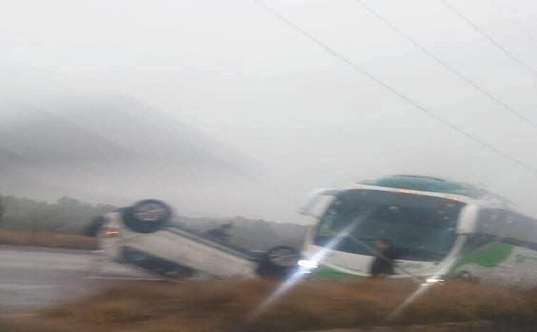ACTOPAN, 28 NOV/NEWS HIDALGO/.- Se registró un hecho de tránsito en la carretera federal México – Laredo, en el tramo Actopan – Ixmiquilpan, a la altura de la localidad de Lagunilla, un vehículo particular quedo volcado.