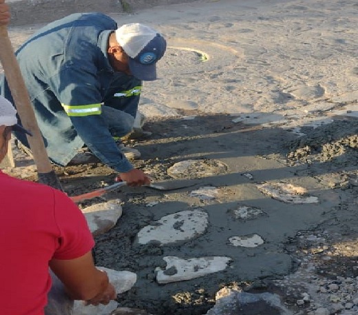 Comisión de Agua de Tepeji repara baches de concreto y piedra ahogada