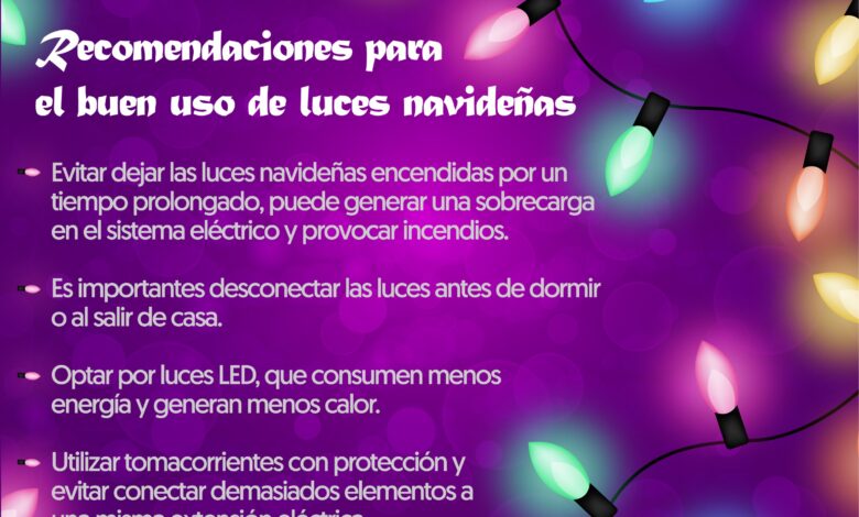 “Las luces navideñas, especialmente las viejas o de baja calidad, así como los cables pueden sobrecalentarse en exceso cuando se mantienen encendidas por varias horas o un tiempo muy prolongado, genera un riesgo de crear una chispa y provocar un incendio», explicó Luz María Lambros Sánchez, coordinadora auxiliar de Seguridad en el Trabajo del IMSS en Hidalgo.