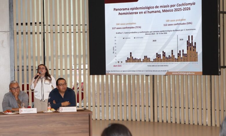 PACHUCA DE SOTO, 22 ABR/NEWS HIDALGO/.- La Secretaría de Salud de Hidalgo, encabezada por Vanesa Escalante Arroyo, confirmó el primer caso detectado de miasis en humano por gusano barrenador en la entidad, registrado en un paciente masculino de 57 años, originario de Tenango de Doria, quien recibió atención médica especializada conforme a los protocolos establecidos.