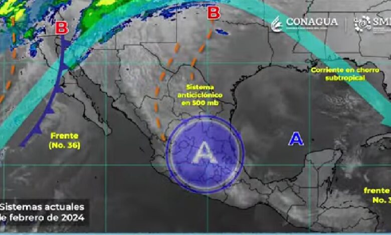 PACHUCA DE SOTO, 21 FEB/NEWS HIDALGO/.- Para este día, el frente frío número 36 que se desplazará sobre el noroeste y norte del país, en interacción con una línea seca que se establecerá sobre Coahuila y con la corriente en chorro subtropical, producirán lluvias puntuales fuertes (de 25 a 50 milímetros [mm]) en Baja California, así como la posible caída de nieve o aguanieve en sierras de dicha entidad. Asimismo, se prevén vientos muy fuertes con rachas de 70 a 90 kilómetros por hora (km/h) y tolvaneras en Chihuahua, Durango y Sonora.