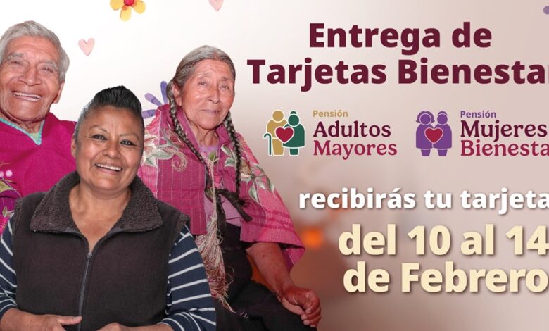 Del 10 al 14 de febrero, entrega de tarjetas de las Pensiones Mujeres y Adultos Mayores
