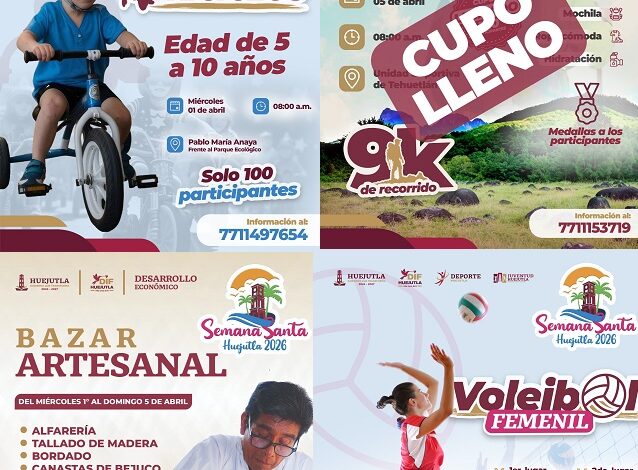 A través de la coordinación entre las áreas de Deporte, DIF Municipal, Juventud y Desarrollo Económico, se han programado actividades para diversos sectores de la población, entre ellas la Carrera de Triciclos y el Rally Deportivo Infantil para niñas y niños de 5 a 10 años, así como torneos de fútbol 7 y voleibol femenil, la Ruta de Senderismo “La Peña”, con un recorrido de 9 kilómetros desde la Unidad Deportiva de Tehuetlán, y el Bazar Artesanal en la zona Centro. Estas acciones se desarrollarán durante los primeros días de abril en distintos puntos del municipio, privilegiando espacios públicos como centros de encuentro comunitario.