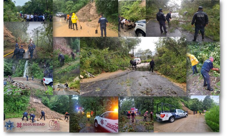 Mediante recorridos de prevención, elementos de la Policía Estatal, mandos coordinados y el H. Cuerpo de Bomberos brindan apoyo en remoción de escombro, piedras y lodo, atendiendo los derrumbes que se han presentado en los 30 municipios del estado más afectados.