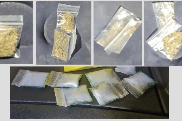 Durante la intervención, las autoridades localizaron 183 dosis de hierba verde seca con características propias de la marihuana, así como 23 dosis de sustancia granulada similar al “cristal”, las cuales eran presuntamente