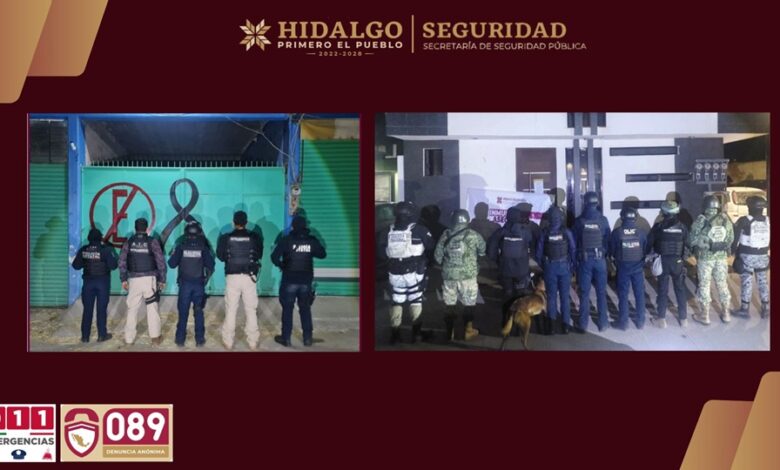 PACHUCA DE SOTO, 18 FEB /NEWS HIDALGO/.- Como resultado de labores de inteligencia y seguimiento estratégico, elementos de la Secretaría de Seguridad Pública de Hidalgo (SSPH), en coordinación con la Procuraduría General de Justicia del Estado de Hidalgo (PGJEH), la Secretaría de la Defensa Nacional (Sedena) y la Guardia Nacional (GN), ejecutaron operativos simultáneos en los municipios de Tulancingo de Bravo y Tepeji del Río de Ocampo, logrando desmantelar dos puntos dedicados a la venta y distribución de narcóticos.