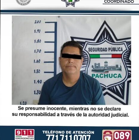 Detiene Policía de Pachuca a hombre por violencia de pareja