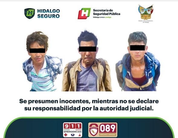 Los sujetos fueron detenidos y remitidos al área de retención primaria de la Secretaría de Seguridad Pública de Hidalgo, donde fueron certificados y posteriormente, acompañados de la documentación correspondiente, quedaron a disposición de un Ministerio Público del fuero común.