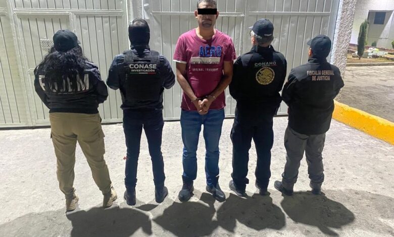 Elementos de la Fiscalía General de Justicia del Estado de México (FGJEM) y la Secretaría de Seguridad y Protección Ciudadana (SSPC), a través de la Coordinación Nacional Antisecuestro (CONASE) y la Comisión para la Atención del Delito de Homicidio Doloso (CONAHO), cumplimentaron la orden de aprehensión.