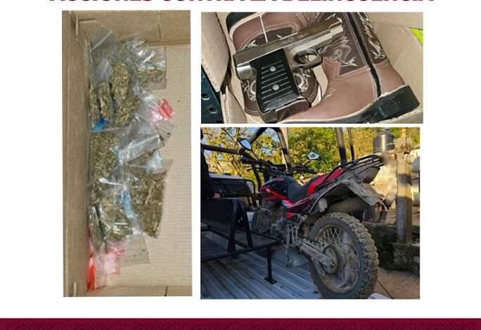 Tras la intervención policial fueron asegurados M. V. Y.  y  C. H. R., alias El Chilo, a quienes  les decomisaron 250 dosis de hierba seca con características de la marihuana, 60 dosis de droga sintética “cristal”, así como 590 litros de combustible distribuidos en diferentes contenedores, un arma de fuego calibre 9 milímetros, diversos cartuchos útiles y una motocicleta.