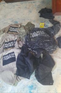 hierba verde con características de mariguana, cartuchos útiles de arma de fuego, un chaleco balístico, prendas con la leyenda “POLICÍA FEDERAL” y teléfonos celulares; en el operativo también fueron detenidas seis personas.