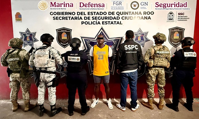 CIUDAD DE MÉXICO, 10 ABR /NEWS HIDALGO/.- Como resultado de trabajos coordinados en Quintana Roo, elementos de la Secretaría de Marina (Semar), Secretaría de la Defensa Nacional (Defensa), Guardia Nacional (GN), Secretaría de Seguridad y Protección Ciudadana (SSPC), Fiscalía General de la República (FGR) y autoridades locales detuvieron a Yoexy “N”, quien cuenta con orden de arresto en Estados Unidos por el delito de conspiración para la distribución de sustancias controladas.