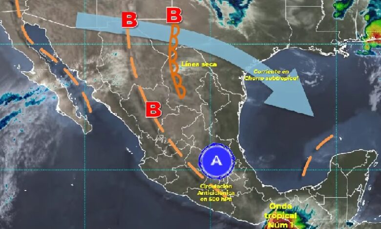 Las lluvias y los vientos serán originados por una línea seca que se extenderá sobre Chihuahua y Coahuila, en interacción con el ingreso de humedad del Golfo de México, inestabilidad en niveles altos de la atmósfera y la corriente en chorro subtropical; un canal de baja presión que se extenderá sobre el interior del país, en combinación con el ingreso de humedad de ambos océanos y por la onda tropical número 1 que se desplazará sobre el Golfo de Tehuantepec, asociada con una zona de baja presión con probabilidad de desarrollo ciclónico, en interacción con un canal de baja presión extendido sobre la Península de Yucatán y el sureste mexicano.