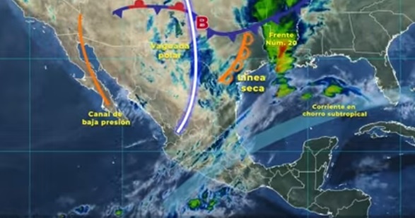 El frente número 20 se desplazará sobre el sur de Estados Unidos de América y dejará de afectar a México; sin embargo, otro frente frío ingresará sobre Tamaulipas e interaccionará con la corriente en chorro subtropical, por lo que se prevén rachas fuertes de viento en esa región.