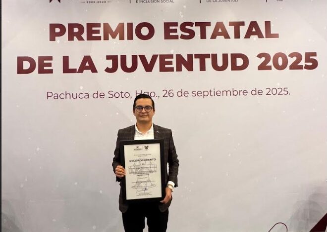 PACHUCA DE SOTO, 28 SEP/NEWS HIDALGO/.- Arnold Azael Bautista Jiménez, egresado de la Licenciatura en Derecho por la Universidad Autónoma del Estado de Hidalgo (UAEH), recibió el Premio Estatal de la Juventud 2025 en la categoría “B” de Participación Social, por su trabajo al frente del proyecto Pachuca Social Run, que busca crear espacios deportivos seguros e inclusivos, bajo una perspectiva humanitaria.
