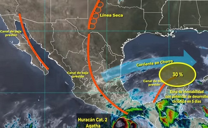 Las condiciones descritas serán generadas por la interacción de un canal de baja presión sobre los estados de la Mesa del Norte y Mesa Central, inestabilidad atmosférica y la presencia del huracán Agatha, de categoría 2 en la escala SaffirSimpson, al sur de las costas de Oaxaca.
