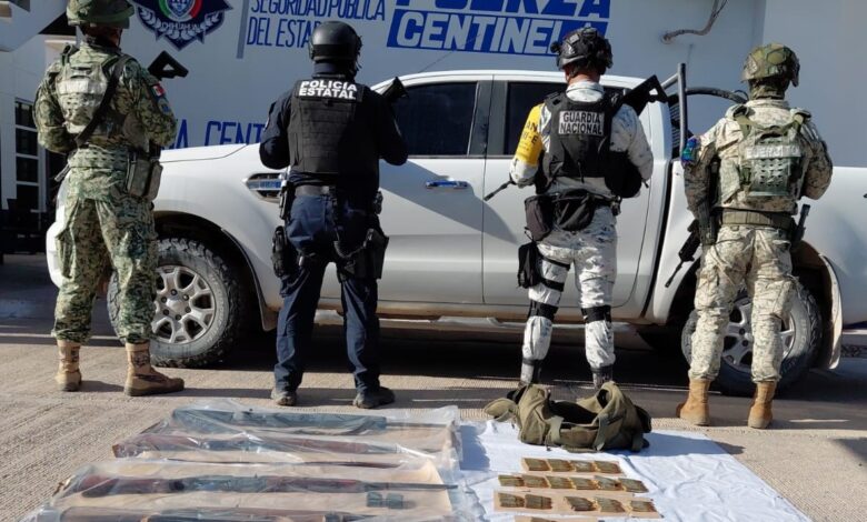 En Chihuahua GN y Ejército aseguran rifles y armas cortas en auto robado