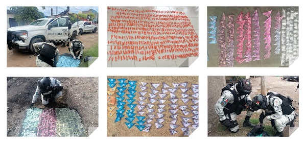 Los recorridos de seguridad y prevención del delito realizados por los guardias nacionales en colonias y vialidades de dichas entidades permitieron detectar la aparente droga.