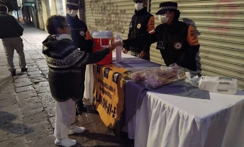 El personal de esta fuerza de seguridad pública se presentó en las inmediaciones del centro histórico ubicado en el municipio de San Luis Potosí, San Luis Potosí, donde se instaló un módulo de distribución de bebidas calientes y alimentos.