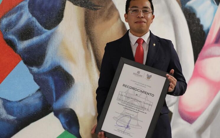 PACHUCA DE SOTO, 20 DIC/NEWS HIDALGO/.- Por segunda ocasión, Luis Ángel Rodríguez Guzmán, alumno de la Licenciatura en Derecho de la Universidad Autónoma del Estado de Hidalgo (UAEH), recibió el Premio Estatal de la Juventud 2025 por promover y defender los derechos de las personas de la diversidad sexual, con el objetivo de combatir la discriminación y garantizar la igualdad de oportunidades, así como espacios seguros y libres de violencia.