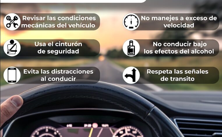 De igual forma, recomendó revisar las condiciones mecánicas del vehículo antes de salir de viaje, poniendo especial atención en frenos, llantas, luces, niveles de aceite y anticongelante, además de portar herramientas básicas y equipo de emergencia.