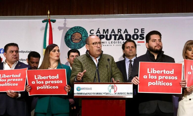 En conferencia de prensa, junto con integrantes de la bancada priista, el coordinador parlamentario señaló que hoy existen mexicanos encarcelados por manifestar sus ideas, tanto en la Ciudad de México como en el estado de Jalisco, donde —según expuso— más de tres docenas de personas fueron enviadas al penal de Puente Grande tras ejercer su derecho a la libre expresión.