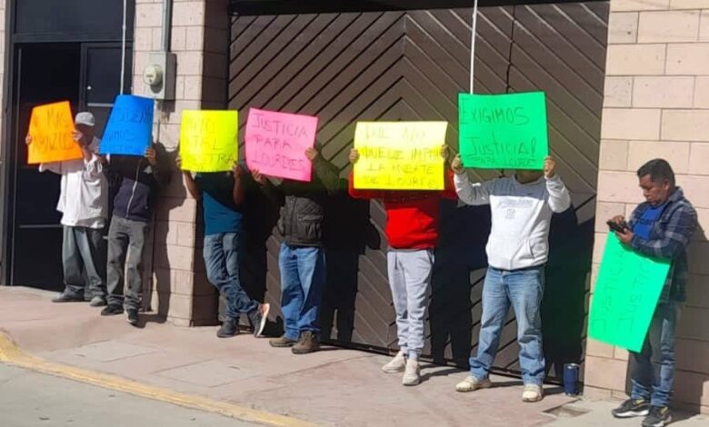 Con pancartas en mano los deudos de la víctima se apostaron fuera de la alcaldía en espera de audiencia con algún representante del gobierno local.