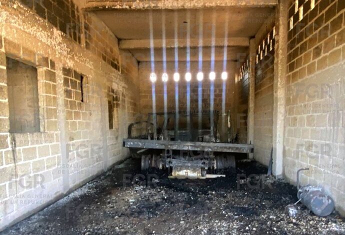 El operativo se llevó a cabo, en coordinación con elementos Policía Federal Ministerial (PFM) y del Centro Federal Pericial Forense, ambos de la Agencia de Investigación Criminal (AIC), quienes aseguraron una camioneta con plataforma calcinada y una estructura metálica tipo plataforma, así como el inmueble.